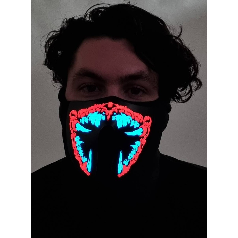 Sound Reactive Light Up Face Mask – Gnarly Red Monster Mouth