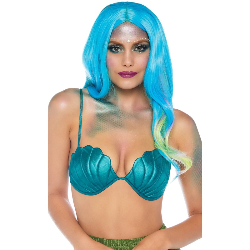Womens Mystical Mermaid Teal Shell BraBecome an enchanting mermaid without the hassle of a full-moon curse with this simple but effective Mermaid shell bra top! This excellent costume accessory is the perfect addition to your mermaid costume for your next