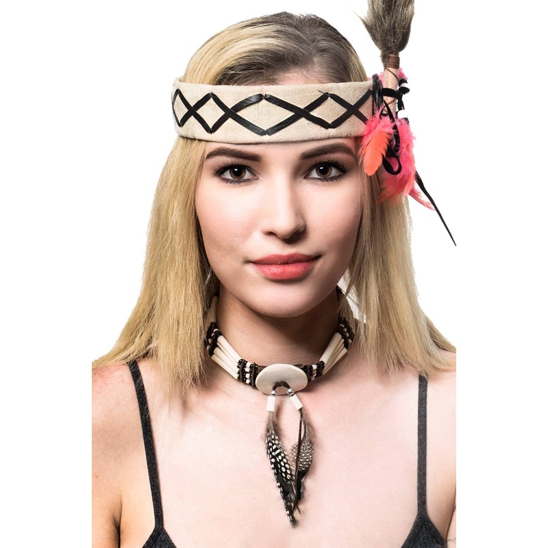 Look the perfect part of a Native American Indian with this authentic looking beaded choker at your next international fancy dress party! Ideal for a Cowboys and Indians dress up event, this brown and white choker necklace with feathers will complete your costume beautifully.