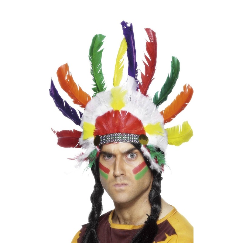Authentic Indian Chief Feather HeaddressLook amazing when you take a step back to the Wild West in this bright and colourful adult's Indian fancy dress Indian Chief headdress. A wonderful coloured headdress to complete your Indian Chief fancy dress costume