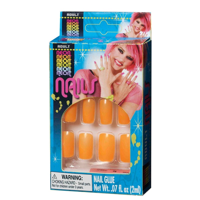Neon Orange Womens 80s Stick On Finger Nails