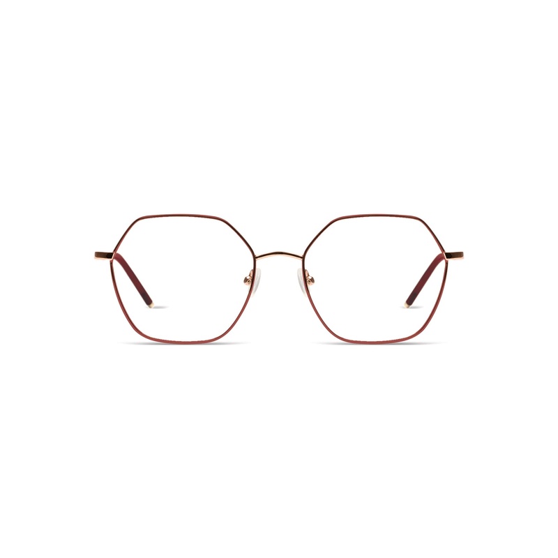 Always has two colored fronts and two acetate fronts. Two classical colors and two contrasting colors. Always combined with a metal color. Classical hexagonal shape.