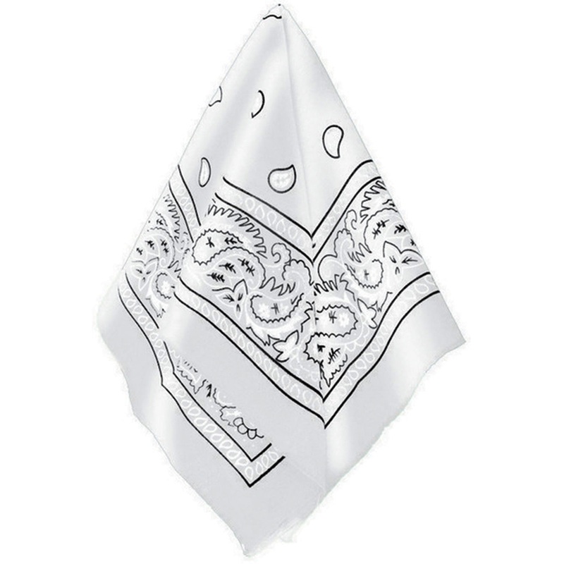 White Paisley Print Bandanna AccessoryIncludes:BandanaDescription:White bandanna features a black paisley design.Costume bandanna measures approximately 50cm x 50cm.One size fits most.Paisley print bandana styling tips:Complete your cowboy dress up with a