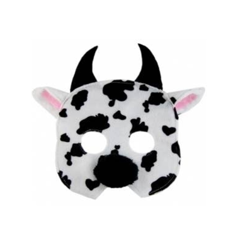 • Cow mask is made with a felt base and features black and white plush fabric finish with black horns and ear details.