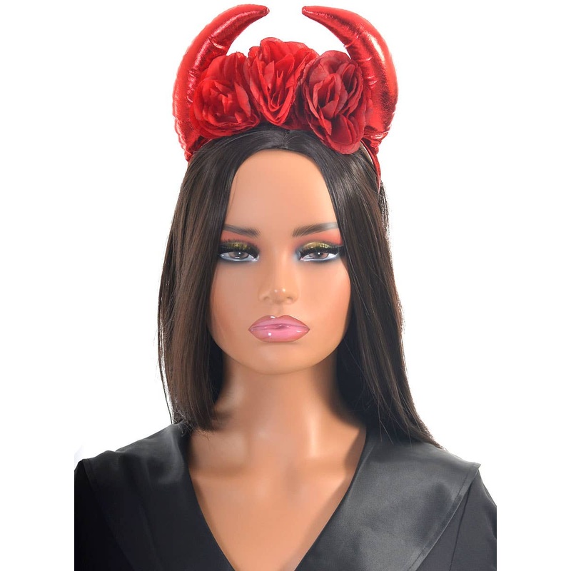 Metallic Red Devil Horns with RosesYou'll feel like a devious vixen this Halloween when you complete your devilish look with this devil horns costume headband. Featuring two metallic red devil horns and red roses in the centre, all eyes will be on you when