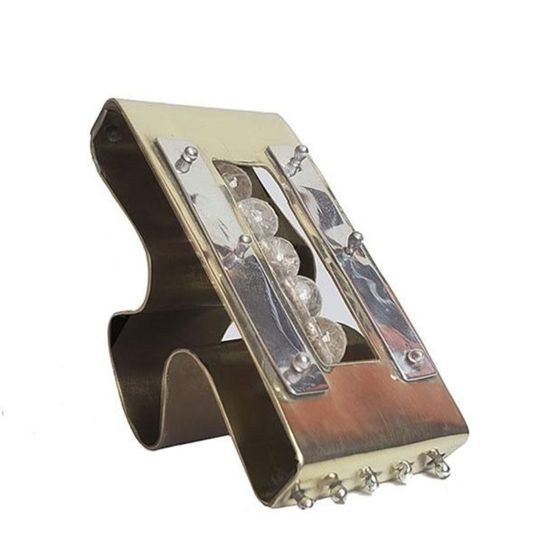 Description:– Materials: Silver, brass, and white crackled quartz – Care: Can be cleaned with BRASSO and silver polish