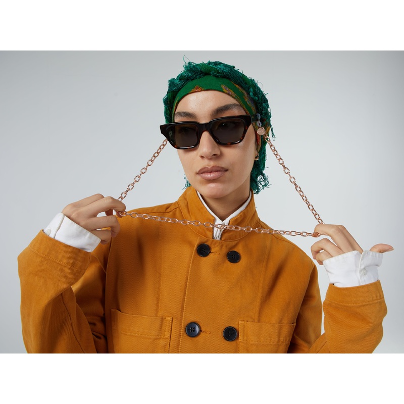 The Ray sunglasses cord is made with big oval shaped rings. Now available in the rose gold colorway.