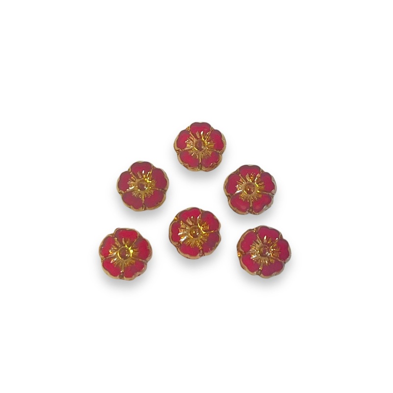 CTF100320990Red Czech Crystal Flower Beads 10mm, 6pcs