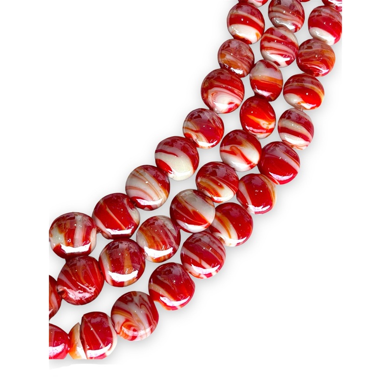 CTF100323270Red Lampwork Flat Round Bead Strand, 16mm