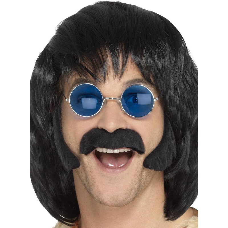 Black Stick On Sideburns and Moustache SetIncludes:Side burnsMoustacheDescription:Kit includes a self adhesive black moustache.A pair of self adhesive black side burns are also included.Please note no refund or exchanges on these products as per our return