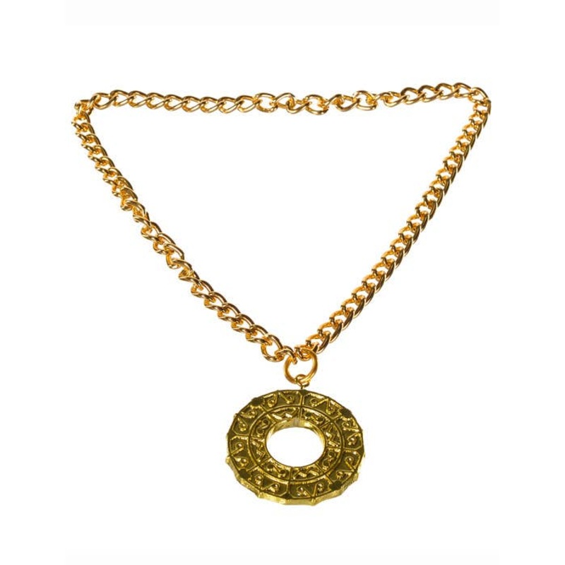 Roman Gold Medallion Necklace Costume JewelleryVersatile and affordable gold plastic Roman style pendant on a chunky chain. This awesome costume jewellery necklace is great for your Ancient Roman, Halloween or gangster fancy dress costume!Description:Gold