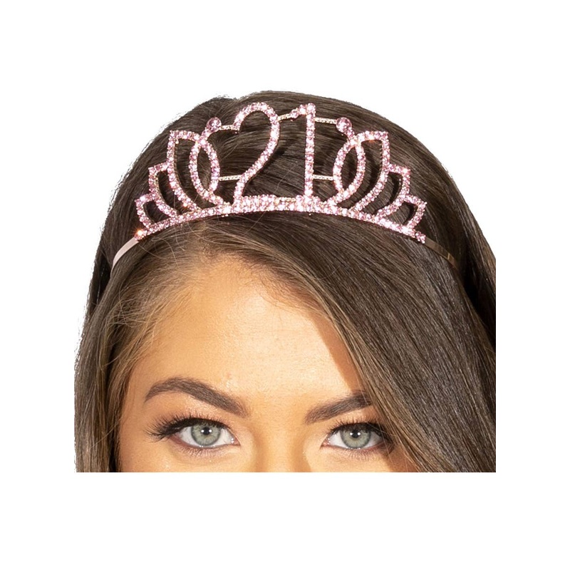 Rose Gold Plated 21st Birthday Tiara Adorned with RhinestonesLooking for a 21st accessory to complement your birthday outfit? This gorgeous rose gold tiara might be just what you're looking for! Paired with a party dress, this milestone birthday accessory