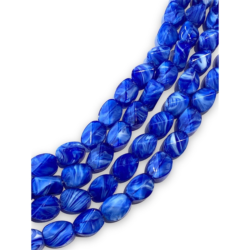 CTF100323243Royal Blue Lampwork Barrel Bead Strand, 16mm