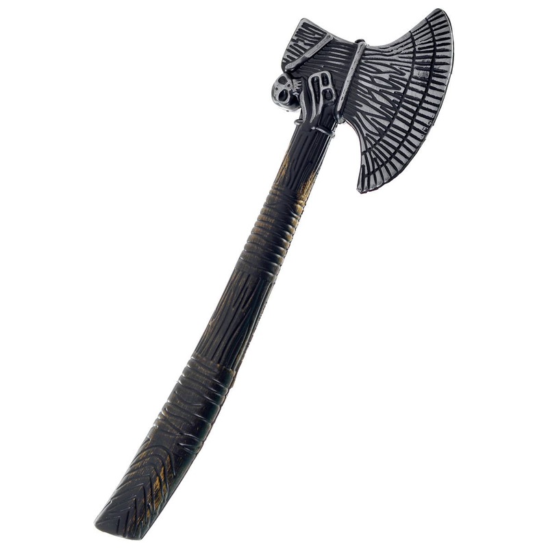 Never be caught off guard when you display this rustic battle axe at your next medieval costume party. The novelty costume accessory axe is made from sturdy plastic and has a rustic look to it. It is approximately 43cm and the blade is about 14cm. The blade features two small skulls bear the back of the blade. Get swinging, when you enter your upcoming medieval dress up party.