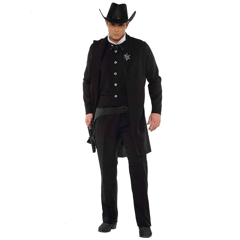 Men's Western Sheriff Fancy Dress CostumeAssert your authority at your next dress up party wearing this cowboy sheriff costume for men. This Western-style sheriff outfit is an excellent choice for a Wild West themed costume party and is sure to help you ke
