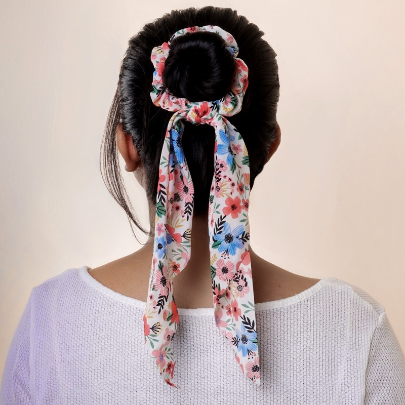 Oh-so-retro! Like basically every other gigantic trend from the '90s, scrunchies have come back in full force. Our Shilon Floral Scarf Scrunchie with pretty floral print gives you the best chance to shine even on normal days. We love the idea of stacking t