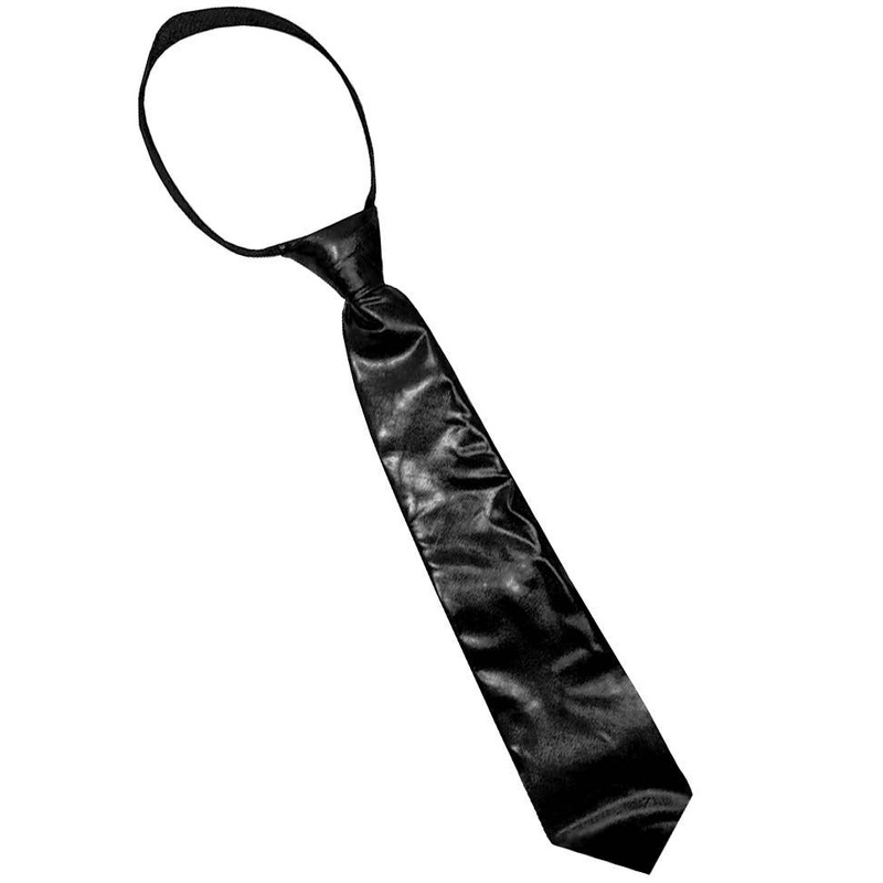 It doesn’t matter what look you’re going for, it will certainly have that edge when you complete it with this black wet look costume tie. This black neck tie is the costume accessory you need to complete your look.