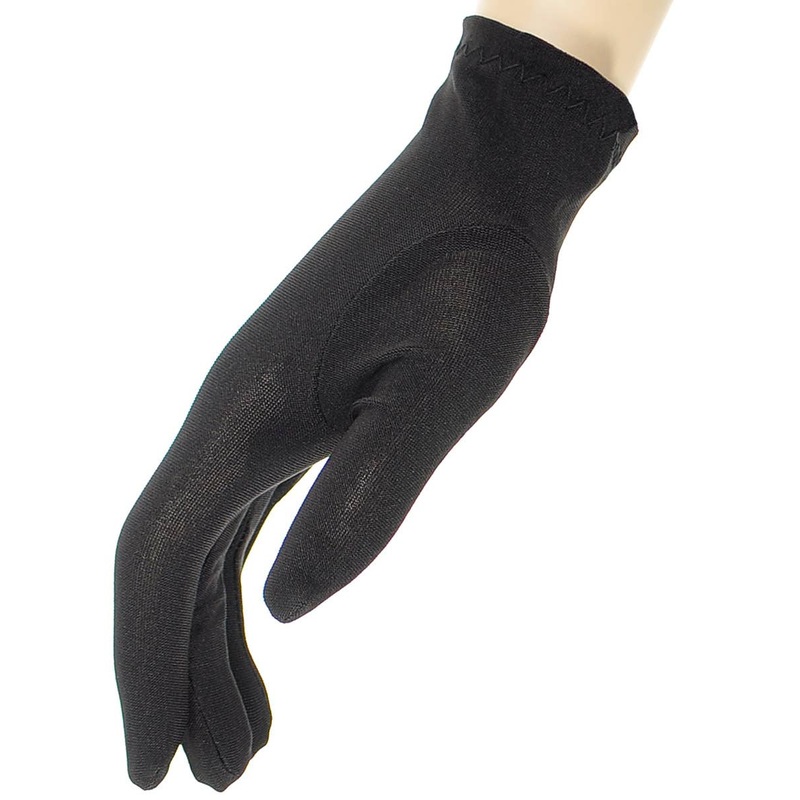 • Costume gloves are made from matte black stretch polyester fabric.