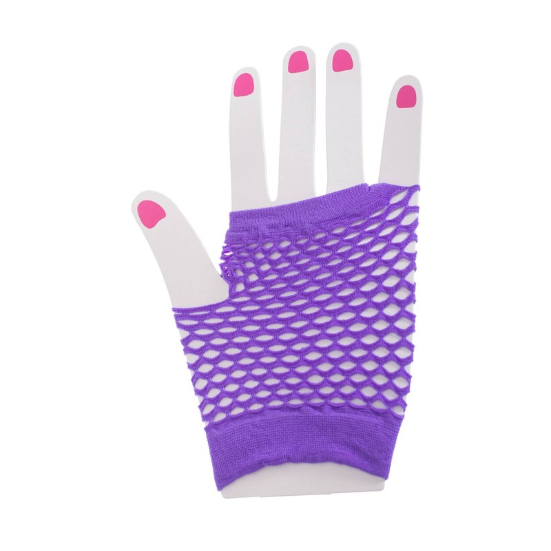 Purple Short Fishnet 80s Costume GlovesThese retro inspired glovettes will add the dash of colour your 80soutfit is needing. Get into the groovy mood of the 80's by wearing these neon purple fishnet gloves. This novelty 1980's accessory is a great addition