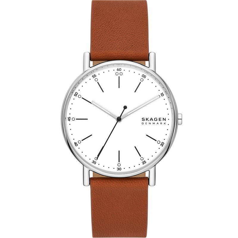The Skagen SKW6903 Signatur offers a timeless design with its silver-tone stainless steel case and clean white dial. The 40mm case and 20mm brown leather strap provide a sophisticated and comfortable fit. Powered by precise quartz movement, this watch feat