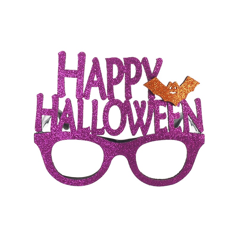 Happy Halloween Party Costume GlassesTransform your look this Halloween with a pair of novelty Happy Halloween costume glasses! These stylish Halloween accessories are covered with sparkly purple glitter and have a small orange glitter bat to one side! Ide