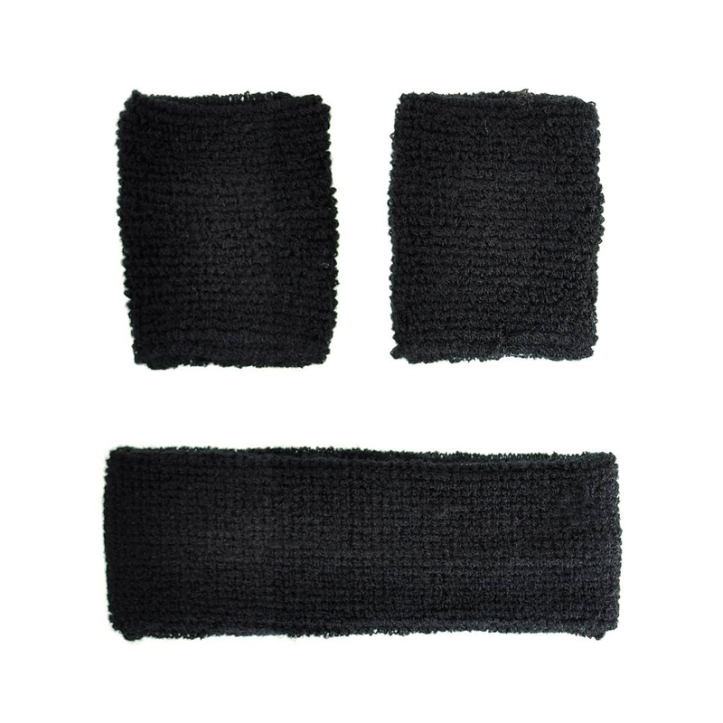 Black Wrist and Head Sweatband KitAre you heading to a sport themed fancy dress party? You can't forget your sweatbands! This accessory kit is the perfect addition to your sporting costume! Whether you're dressing up as an Olympic runner or tennis player,