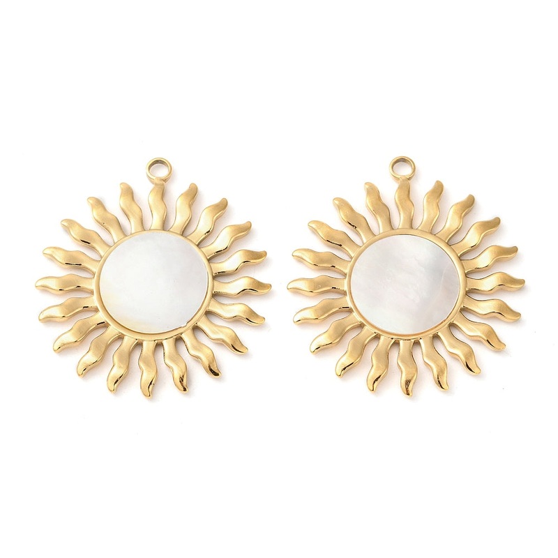Stainless Steel Natural Shell Sun Pendant 38mm, 1pc