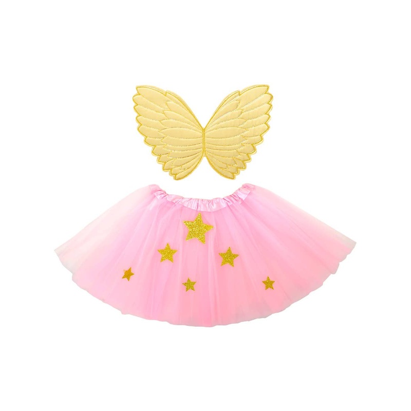Girl's Pink and Gold Tutu and Wings Costume SetTransform your little one into a beautiful angel fairy with this pink and gold costume accessory set! Perfect for a fairytale themed fancy dress party, your little one is sure to feel absolutely magical when s