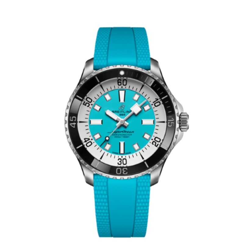 Performance and style for all your water-based pursuits. In the 1960s, the new sport of scuba diving was all the rage. For divers, timing was everything, and Breitling set out to give them the most clear-cut dive watch possible by eliminating any feature that didnt support their lifesaving needs underwater. This pared-down watch was named the Slow Motion. What remained were clean lines, chunky luminescent indexes, squared-off hands and a high-contrast dial ring, all aimed at maximum legibility. Practical, yes. But what people really fell in love with was the look. The new Superocean retraces the Slow Motion’s celebrated design codes, while adding modern features, like a ceramic-inlayed bezel and brightly colored dials. Broad hands and indexes in luminescent Super-LumiNova allow for easy readability underwater. The watch is water resistant to 300 m (1000 ft), as well as being shock-, sand- and saltwater-resistant. The bronze version uses a special alloy that has excellent resistance to corrosion, yet will still develop a subtle patina over time that makes the watch even more unique. The two strap options (rubber and metal bracelet) have a folding clasp that allows for micro-adjustments of up to 15 mm for easy wear over rashies and wetsuits. Its scratch-proof ceramic inlayed bezel will never wear or fade. For safety, the bezel is uni-directional on most sizes and bi-directional with a patented lock on the 46 mm. Best of all, this is no longer strictly a dive watchsurf with it, swim with it, hit the beach bar with it, then wear it out to dinner. The Superocean perfectly balances the nostalgia of its heritage with a fresh new look.