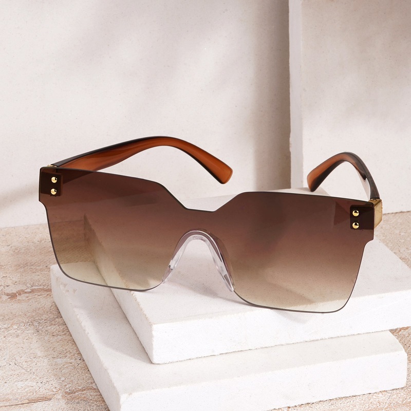 Tenzin Rimless Brown Tinted Oversized Sunglasses