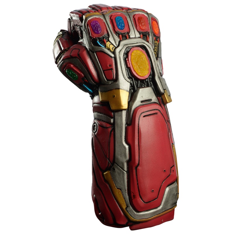 Kids Deluxe Thanos Nano GauntletIncludes:GauntletDescription:Gauntlet is made from EVA plastic and features a strap for the wrist.Thanos gauntlet is red, silver and gold with plastic Infinity War Stones,One size fits most.This is an officially licensed Mar