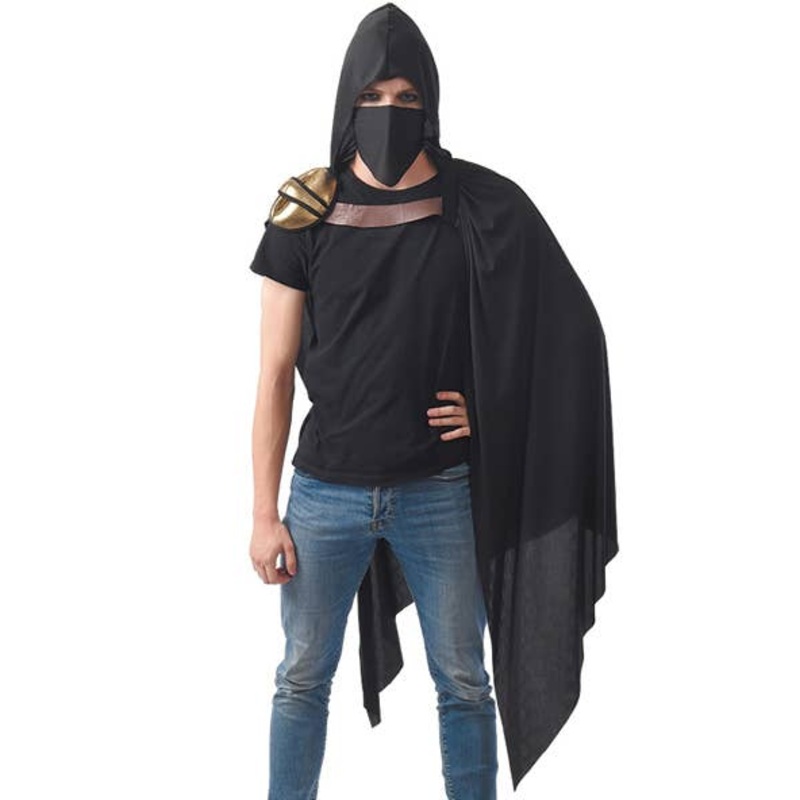 Black Assassin Costume Cape with Face MaskThis classic assassin costume cape is the perfect way to complete your killer costume. Made of quality materials, this cape is ideal for any budding assassin, it even features a hood for added authenticity. The mat