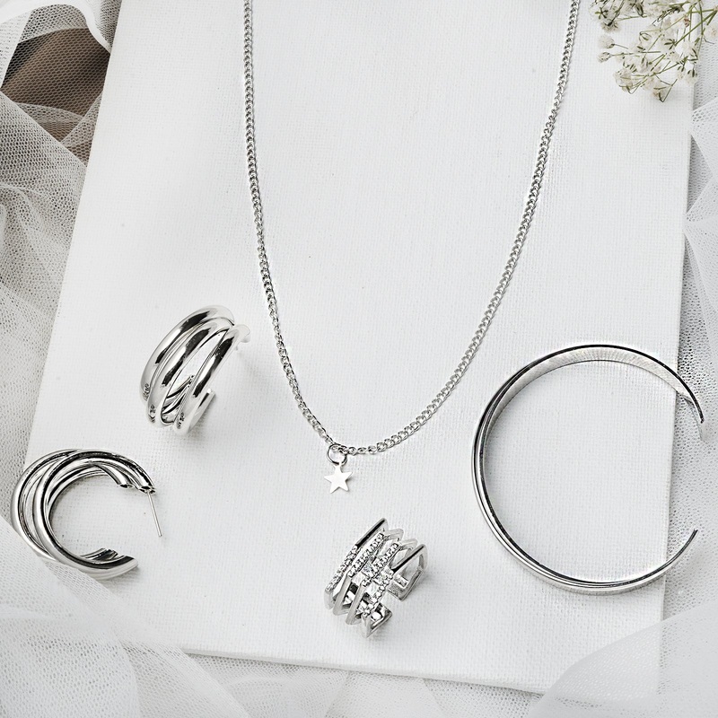 Finding beauty in simple things like our Tinsel Twilight Jewelry Set. It features our minimal star necklace paired with claudia silver hoops, a bold silver ring and plain silver bracelet cuff to complete the look. For the days you want to slip into somethi