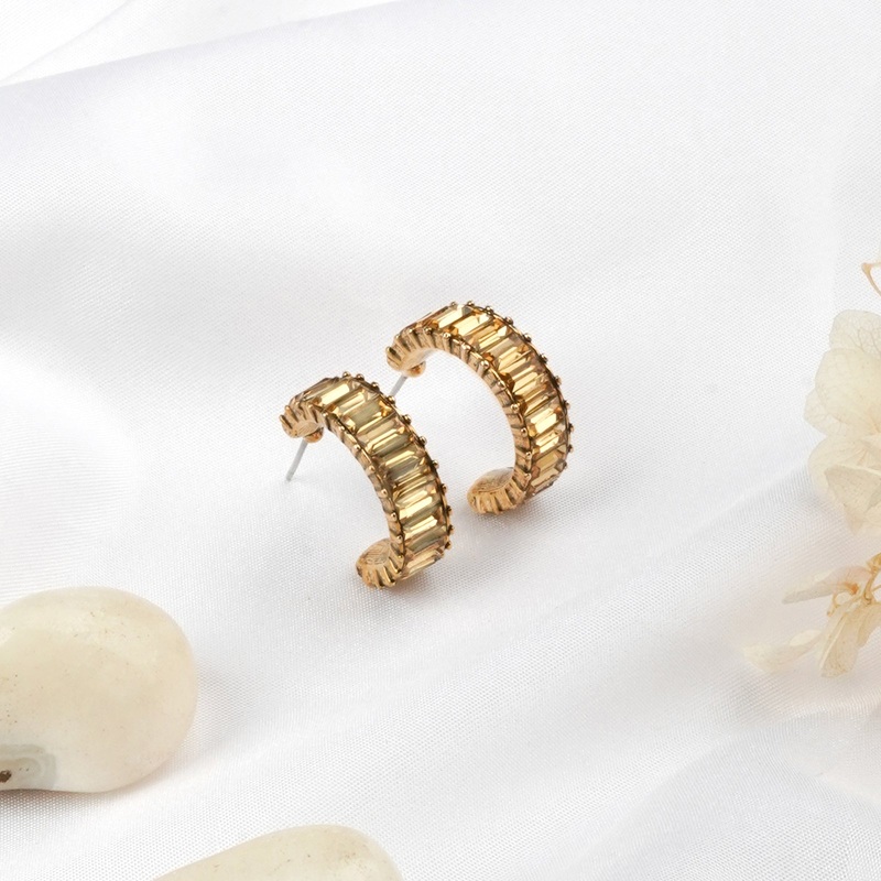 We added a little sparkle to a classic hoop with shiny coloured studs to a add a tad bit of sparkle to you everyday outfits.SPECIFICATIONSColourBeige & GoldMaterialMetal Alloy & RhinestoneClosurePost Back with Metal StopperMeasurementsDaimeter: 2cmPackage