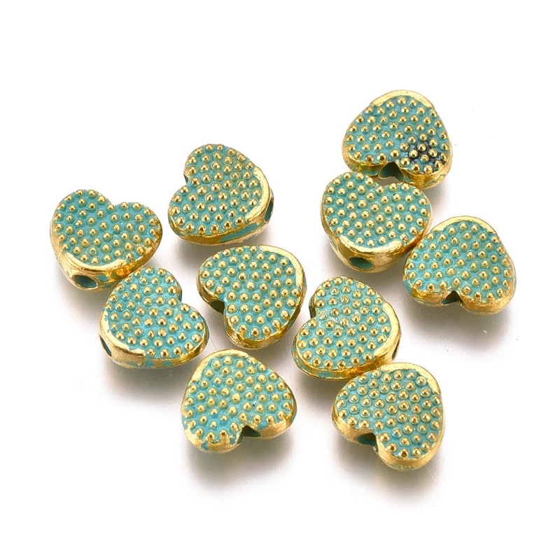 CTF100323069Verdigris Metal heart beads 7mm 10 pcs