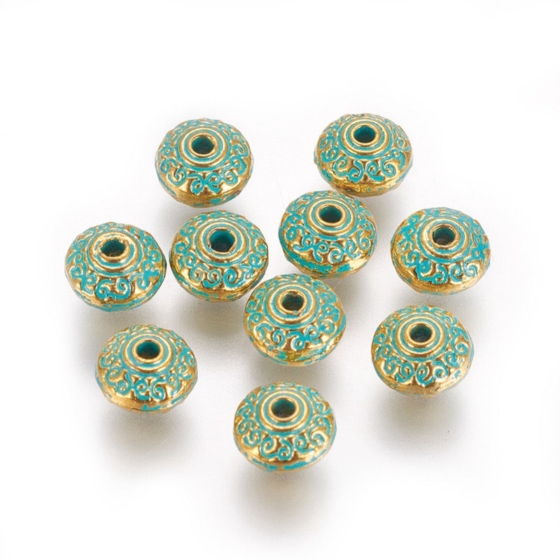 Verdigris Rondelle Beads, 7mm 10pcs