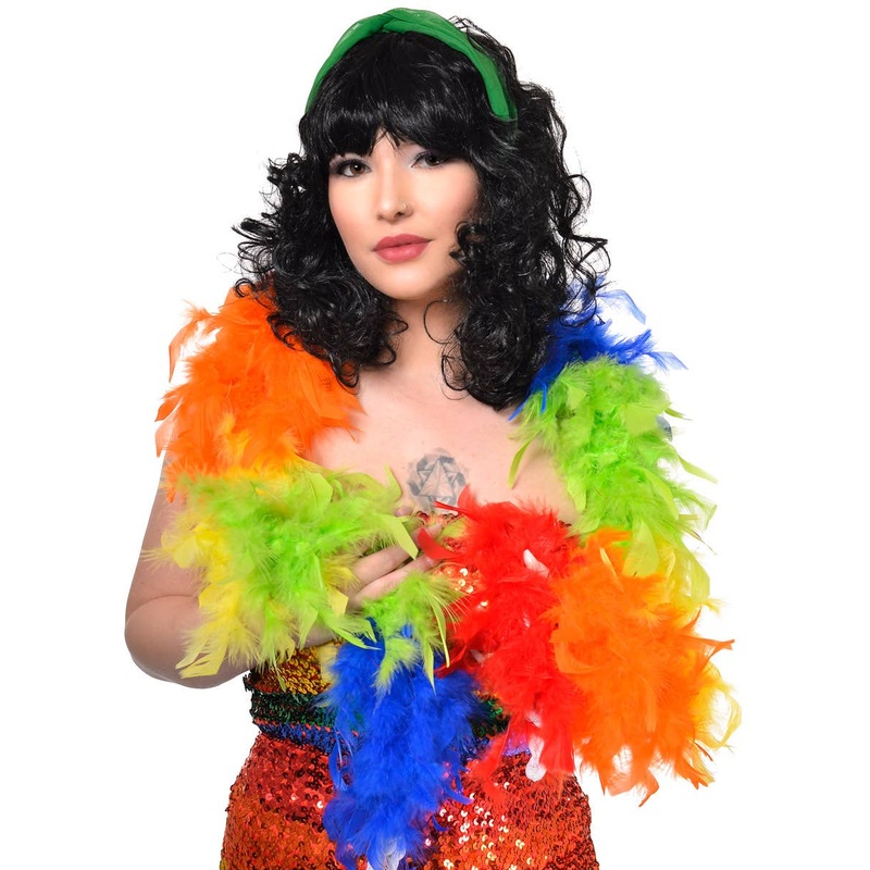 Are you looking for the perfect accessory to add a little colour to your Mardi Gras outfit this year? Why not grab yourself a rainbow feather boa, we assure you it’ll add the perfect finishing touch to your outfit? This rainbow feather costume boa is a whopping 1.5 metres long and features white rope ends to make it super easy for you to hold while you are participating in the mardi gras parade. The vibrant costume accessory will have you standing out from the crowd all night long!