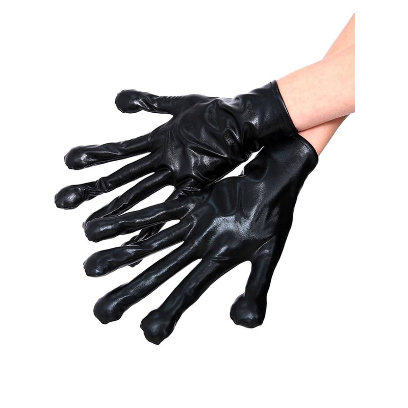 • Alien hand gloves are made from a wet look black fabric.