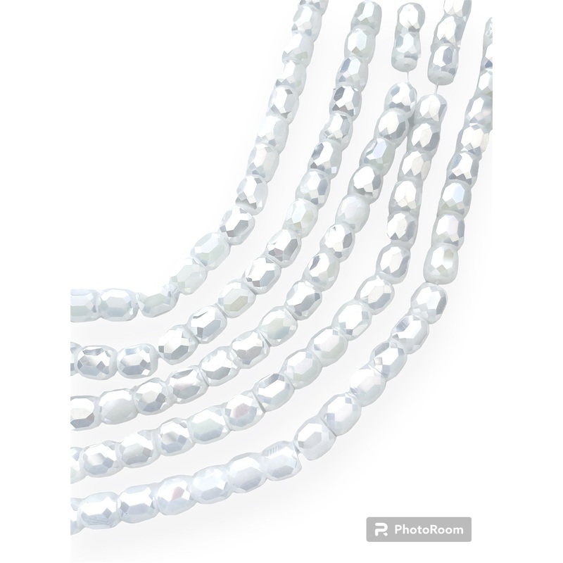 CTF100320757White AB Rectangular Electroplated Crystal Strand, 12mm