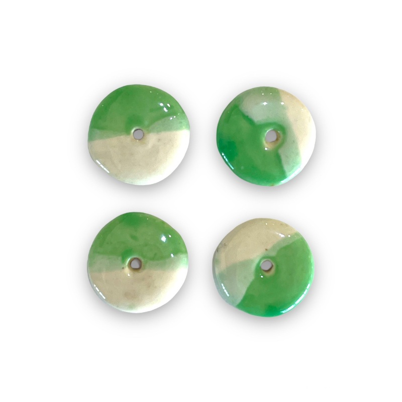 White-Green Ceramic Rondelles, 4pcs