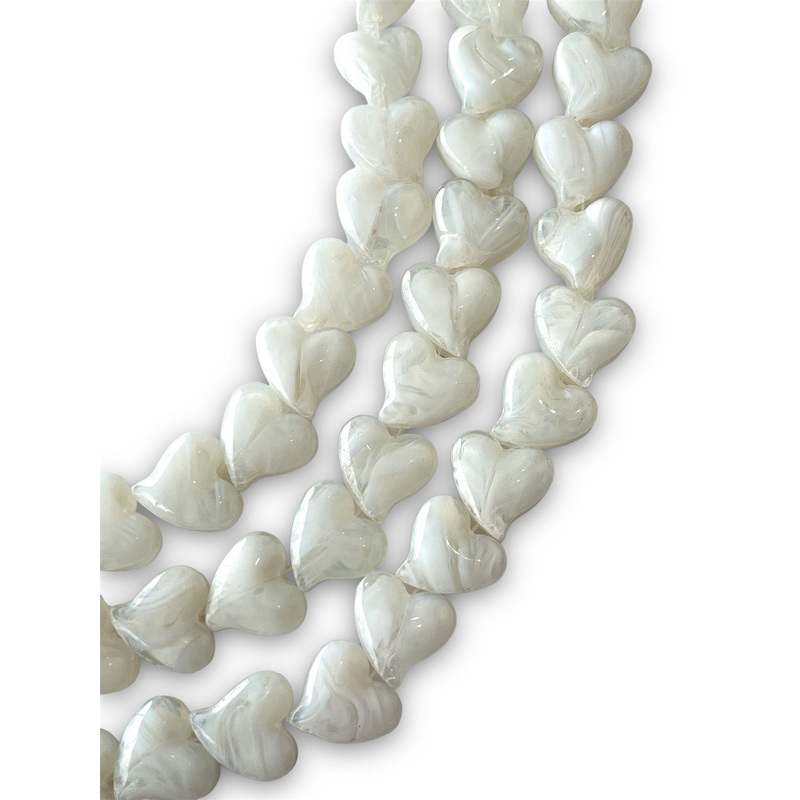 CTF100323260White Lampwork Heart Bead Strand, 16mm