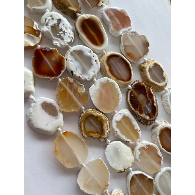 CTF100323310White Sliced Agate Bead Strand