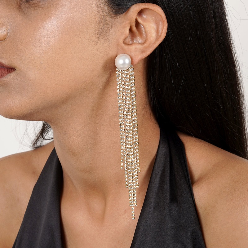 Flowy Rhinestones and a pearl ball is fashioned to be absolutely comfortable and flawless. These earring will look splendid no matter what you choose to wear with them