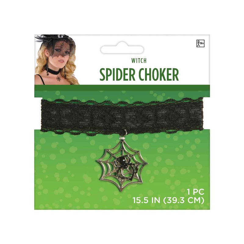 Novelty Black Lace Spider Choker Costume AccessoryComplete your witch outfit with some spooky costume jewellery like this black lace choker necklace! This choker features a spiderweb and spider pendant and would make sure a gorgeously gothic Halloween cost