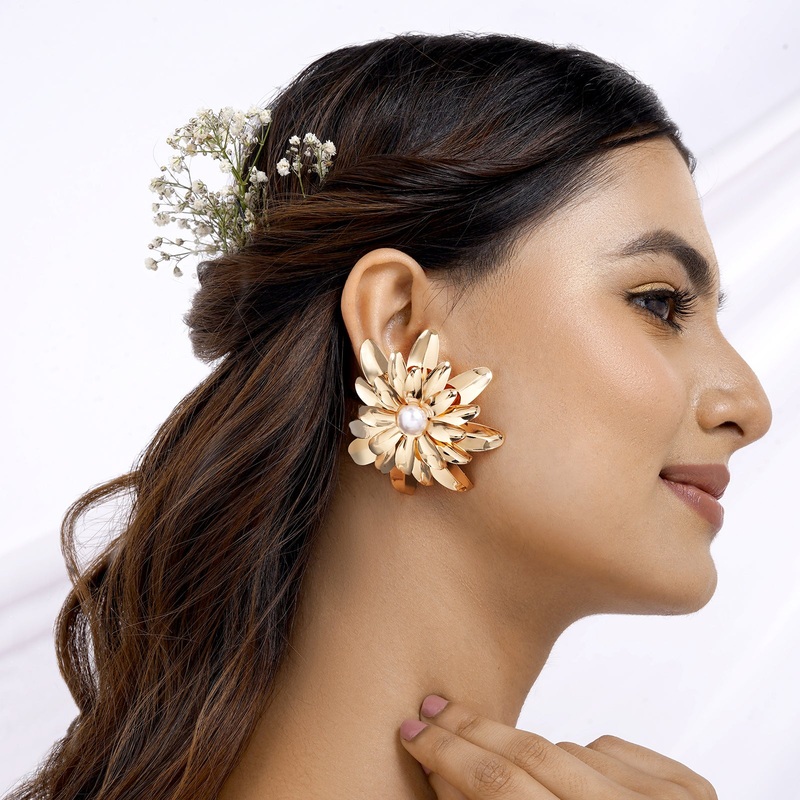 Embrace nature's beauty with our Zinnia Gold Floral Earrings, a delicate symphony of elegance and botanical charm. Each petal is intricately crafted, capturing the essence of beautiful blooming flowers. The floral design adds a touch of femininity to these