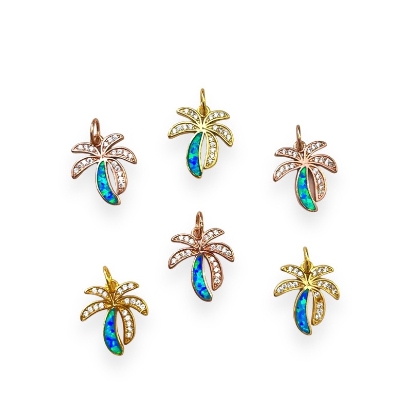 CTF100321323Zirconia Opalite Palm Tree Charm, 1pc